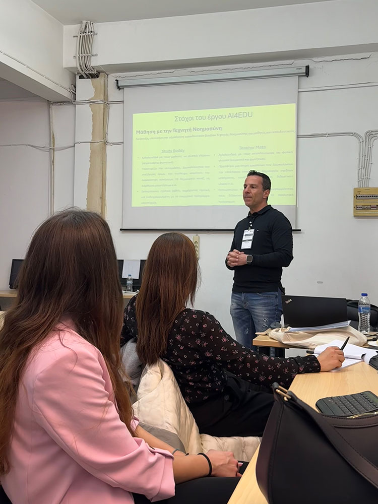 During the session, Marios Papaevripidou and Theodoros Karafyllidis presented AI4EDU’s vision of empowering teachers and students across Europe with the skills, resources, and confidence needed to engage meaningfully with Artificial Intelligence in education.