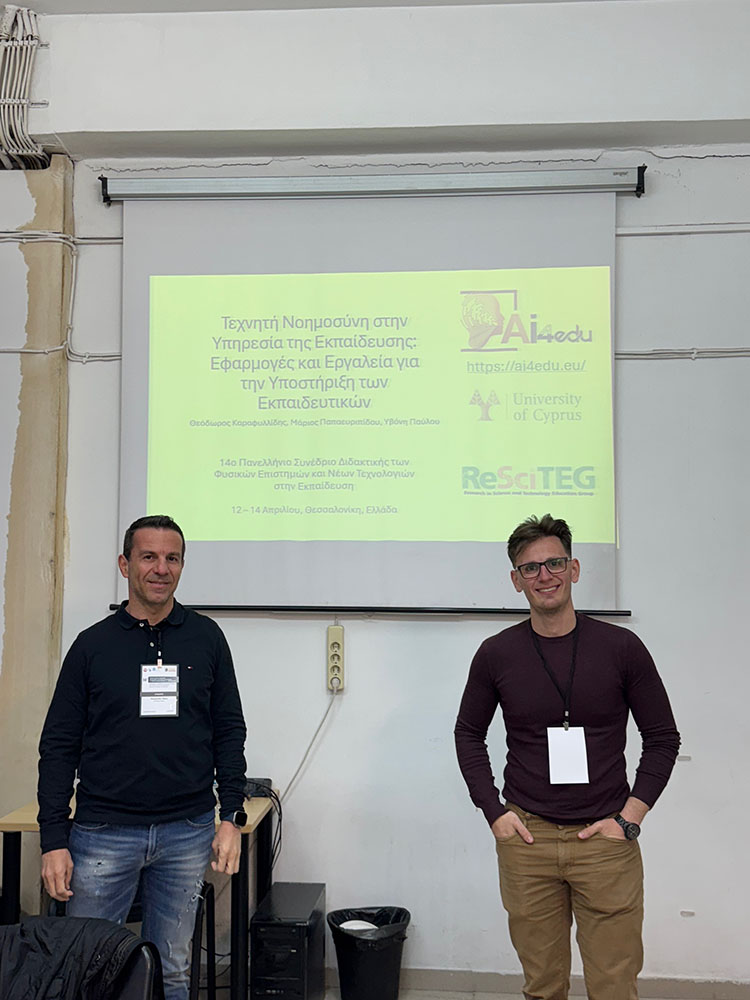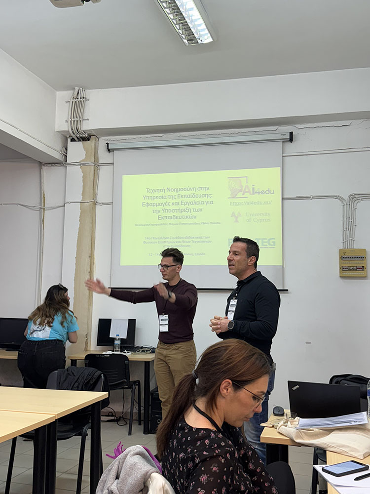 On April 12, 2025, we participated in the 14th Panhellenic Conference for Science Education and New Technologies in Thessaloniki, Greece. As part of the conference program, we hosted an interactive workshop titled “Artificial Intelligence in the Service of Education: Applications and Tools for Supporting Educators,” showcasing the AI4EDU project and demonstrating our two AI-powered applications for teaching and learning: TeacherMate and StudyBuddy.