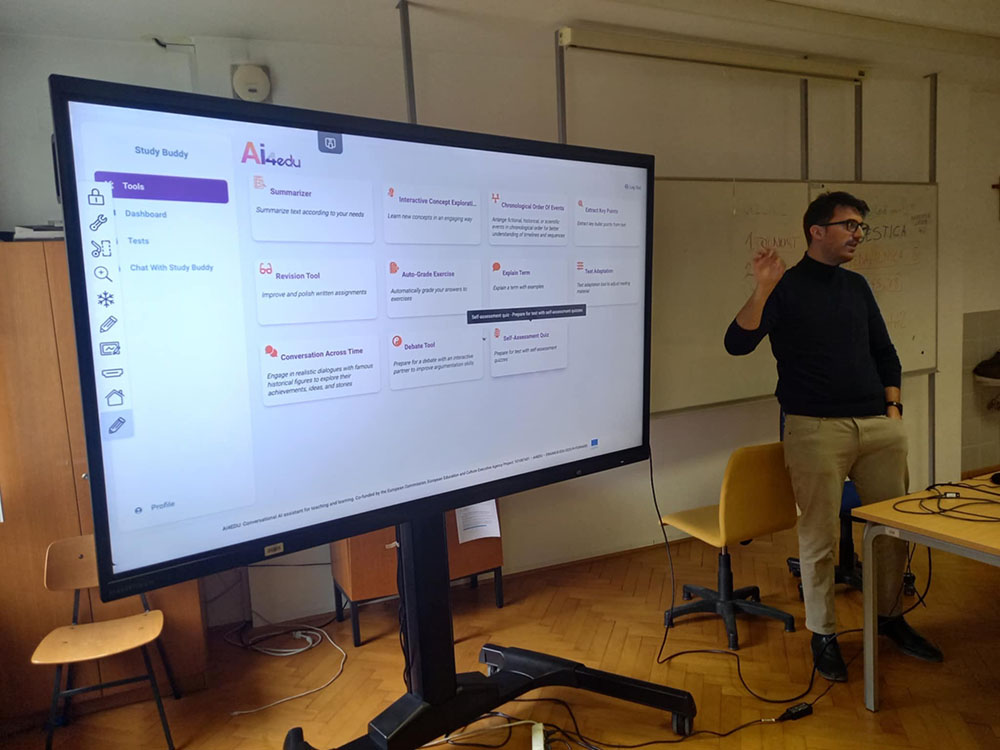 George Paraskevopoulos, ARC, participated in the AI-THOS Train-the-Trainer Bootcamp 6-8 May 2025 in Lubljiana, Slovenia. He had a presentation on LLMs and education, where he presented the innovations of the AI4EDU project in the domain of GenAI in education to around 30 researchers of the AI-THOS project from the SSH domain, introducing them to GenAI technologies.