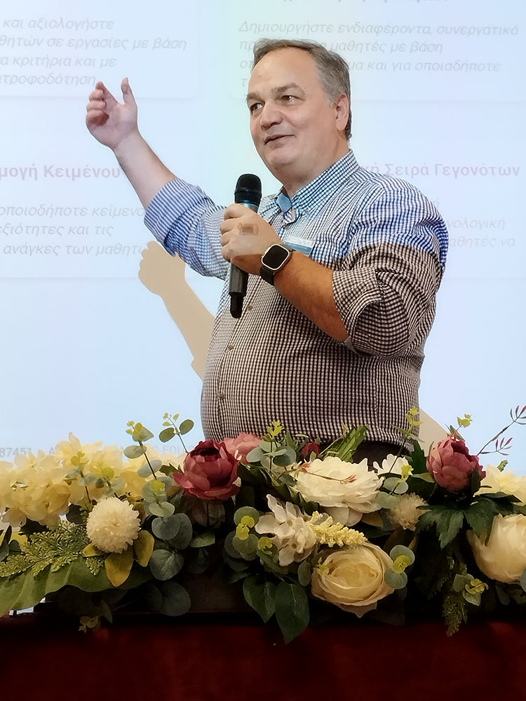 Vassilis Katsouros and Pepi Stamouli held a workshop on AI in the teaching practice, where Teacher Mate was thoroughly presented and tested by 50 participants, including educators and postgraduate students.