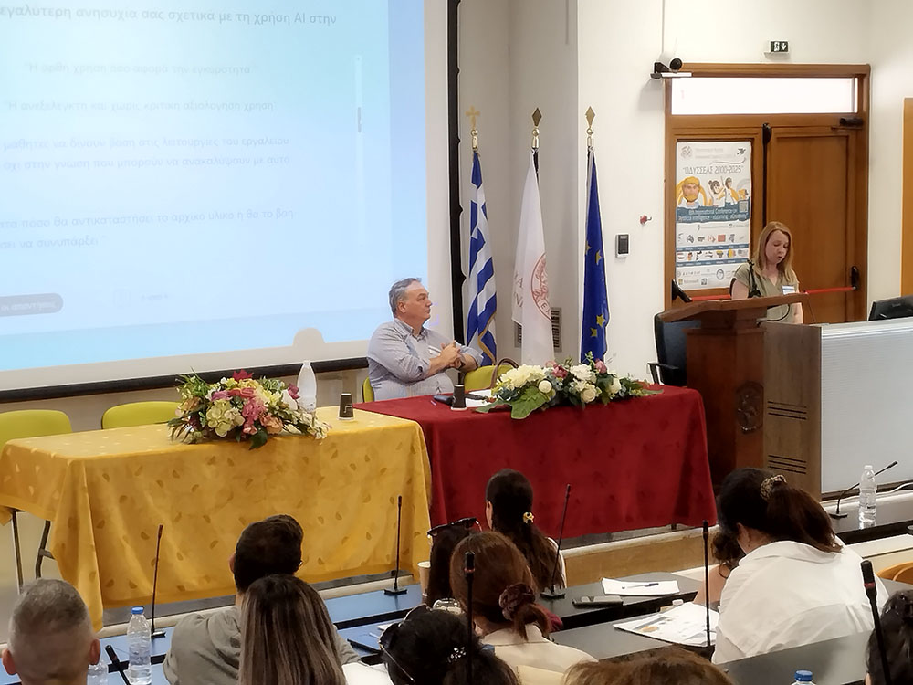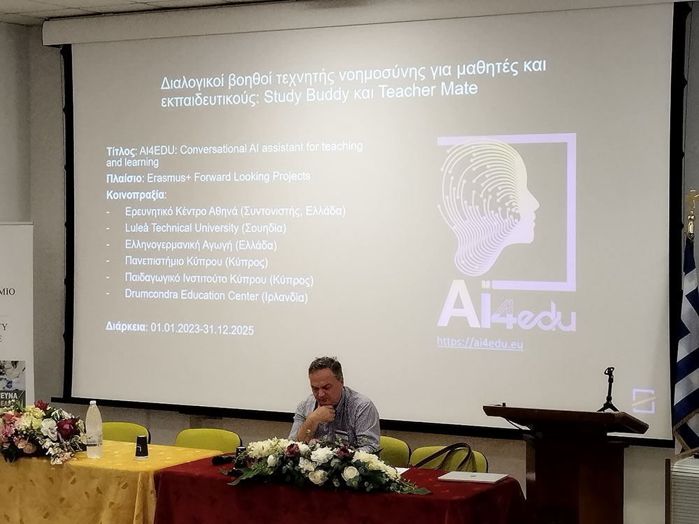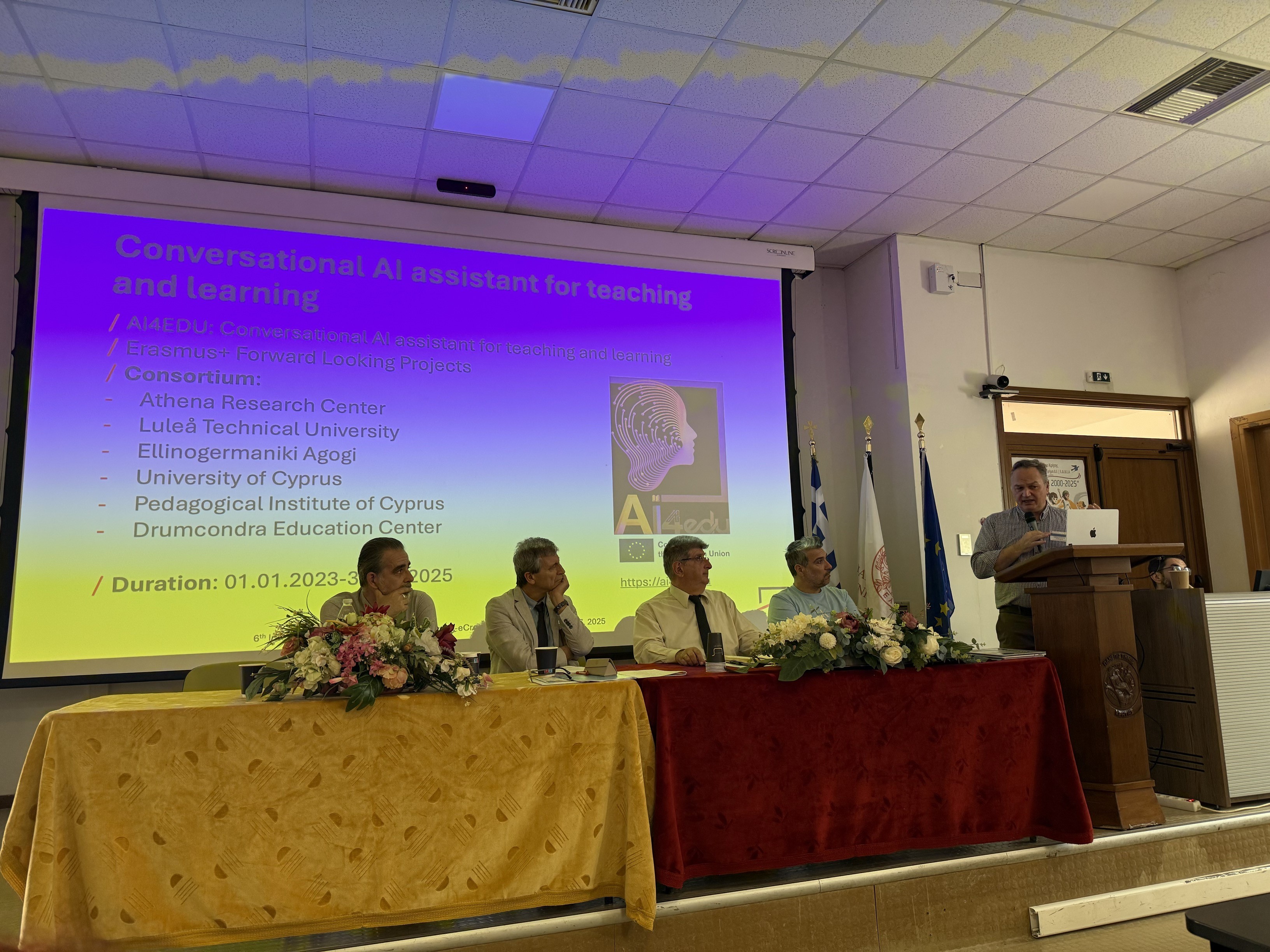 Vassilis Katsouros, ARC was a keynote speaker presenting recent advancements in GenAI and LLMs, including the AI4EDU project outcomes to around 80 participants, including faculty members of the University of Crete, researchers and educators.