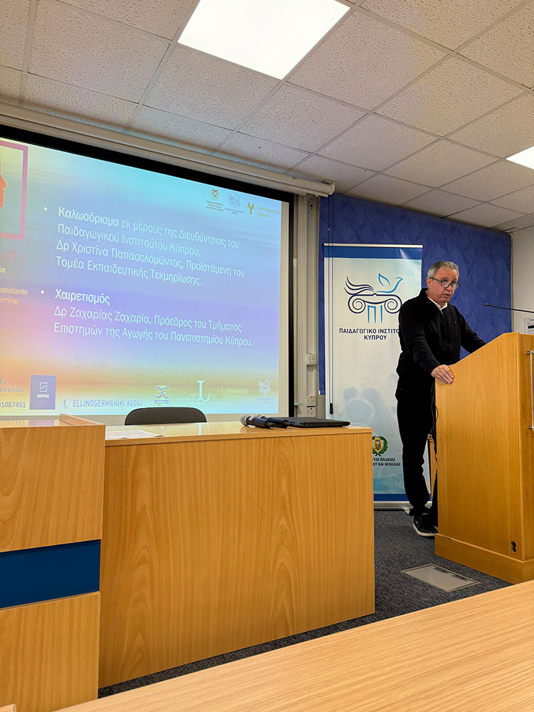 On Saturday, December 6, the University of Cyprus (ReSciTEG) and the Cyprus Pedagogical Institute co-organised a national event to present the project results with emphasis on policy recommendations inspired from the AI4EDU project. Educators, researchers, students, and policy stakeholders came together to explore: